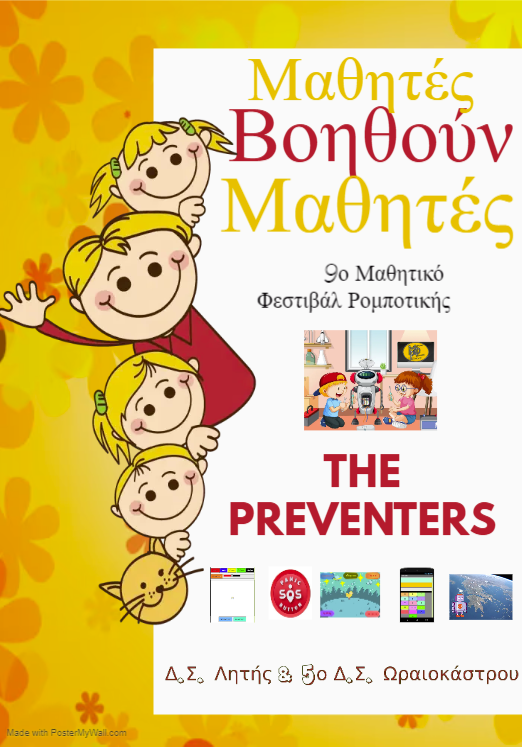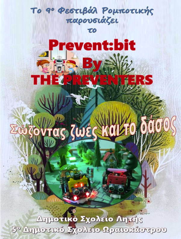 Οι μαθητές της Ε’ και ΣΤ’ τάξης των παραπάνω δημοτικών σχολείων σκέφτηκαν και ανέπτυξαν ένα σύστημα αποτροπής των κινδύνων της πυρκαγιάς. Το έργο τους ονομάζεται Preventbit (από τη σύνθεση των λέξεων Prevent=αποτρέπω + bit από τον υπολογιστή τσέπης Microbit που χρησιμοποιούν). Η ομάδα τους ονομάζεται The Preventers και το έργο τους στοχεύει στην έγκαιρη προειδοποίηση των πολιτών σε περίπτωση πυρκαγιάς αλλά ταυτόχρονα και στην άμεση αποστολή οχημάτων για την κατάσβεσή της ή/και στη δημιουργία ζώνης ασφαλείας μέχρι την ασφαλή απομάκρυνση των ανθρώπων από την περιοχή της πυρκαγιάς. Τα παραπάνω επιτυγχάνονται με τη χρήση του Microbit, των Maqueen ρομπότ και των τεχνολογιών που υποστηρίζουν, όπως ο αισθητήρας θερμότητας, το IR remote control, η ραδιοεπικοινωνία, το line tracking. Η συνεργασία των παραπάνω τεχνολογιών γίνεται με τη χρήση της πλατφόρμας https://makecode.microbit.org όπου η ομάδα των Preventers συνθέτει τον κώδικα με τον οποίο γίνεται η επικοινωνία με τα φώτα τροχαίας, τα προειδοποιητικά led κινδύνου και τα 2 ρομπότ Maqueen που ενεργοποιούνται και κατευθύνονται στο σημείο κινδύνου.