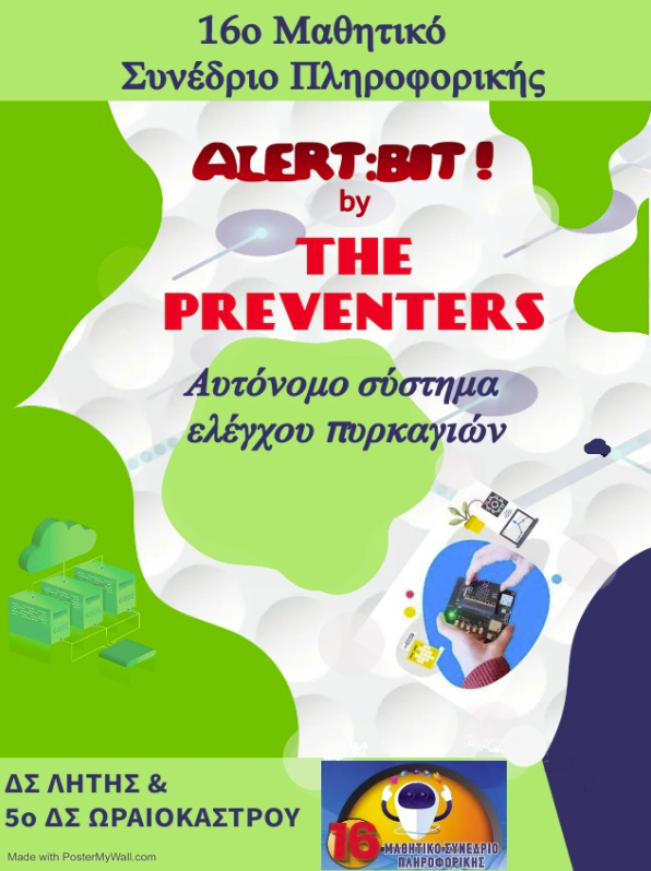 Η ομάδα ρομποτικής The Preventers από τα δημοτικά σχολεία Λητής και 5ου Ωραιοκάστρου (Μελισσοχώρι), σκέφτηκαν και ανέπτυξαν ένα αυτόνομο σύστημα ελέγχου και αποτροπής της πυρκαγιάς. Το έργο τους ονομάζεται Alert:bit (από τη σύνθεση των λέξεων Alert=ειδοποιώ + bit από τον μικροελεγκτή Microbit που χρησιμοποιούν).