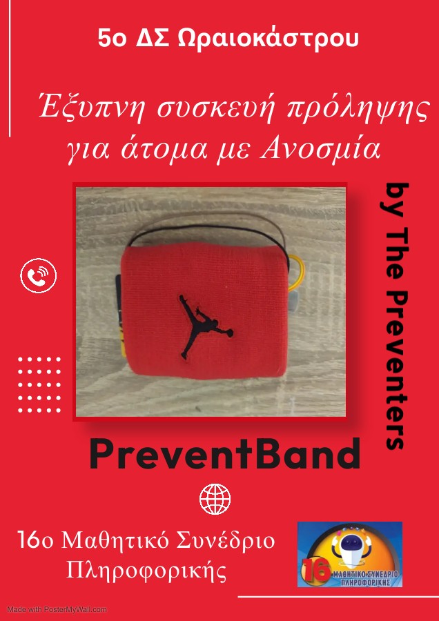 Οι μαθητές της ΣΤ’ τάξης του 5ου ΔΣ Ωραιοκάστρου, σκέφτηκαν και δημιούργησαν μια έξυπνη συσκευή για τον δάσκαλό τους ο οποίος ανήκει στο 1-2% των ανθρώπων που υποφέρουν από υποσμία ή ανοσμία. Η υποσμία αναφέρεται στην μειωμένη όσφρηση ενώ η ανοσμία στην πλήρη απουσία όσφρησης. Ο δάσκαλος του σχολείου μας ανήκει σε αυτούς που δεν έχουν καθόλου όσφρηση. Η ομάδα ονομάζεται The Preventers και η συσκευή τους Preventband και στοχεύει να μειώσει τους κινδύνους που αντιμετωπίζουν στην καθημερινότητά τους αυτοί οι άνθρωποι. Η συσκευή είναι προσαρμοσμένη σε ένα περικάρπιο για να μπορεί να τη φοράει ο χρήστης σε σημείο όπου υπάρχει άμεση επαφή με τον εισπνεόμενο αέρα που υπάρχει στον χώρο. Μόλις ο αισθητήρας ανιχνεύσει επικίνδυνα αέρια, όπως καπνός, αέριο, βουτάνιο τότε η συσκευή αρχίζει να κάνει ήχο για να ειδοποιήσει αυτόν που την φοράει πως υπάρχει διαρροή επικίνδυνου αερίου ή φωτιά. Φυσικά, η συσκευή είναι κατάλληλη και για ανθρώπους που εργάζονται σε βιομηχανίες όπου χρησιμοποιούνται τέτοια αέρια και υπάρχει ο κίνδυνος διαρροής.