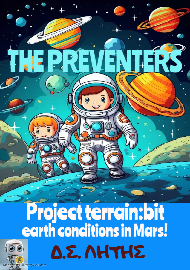 Το πόσιμο νερό, ο καθαρός αέρας και η κατάλληλη θερμοκρασία είναι τα απαραίτητα στοιχεία για να μπορέσει ο άνθρωπος να επιβιώσει. Οι μαθητές μας αναπτύσσουν στο έδαφος του Άρη εργαστήρια μέτρησης ph, καθαρού αέρα και θερμοκρασίας για να προσομοιάσουν τις συνθήκες που υπάρχουν στη Γη.